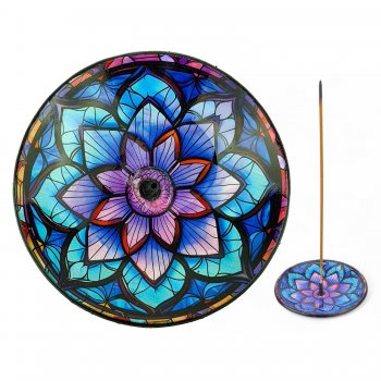 INCENSARIO PRATINHO VIDRO - MANDALA AZUL (M32)