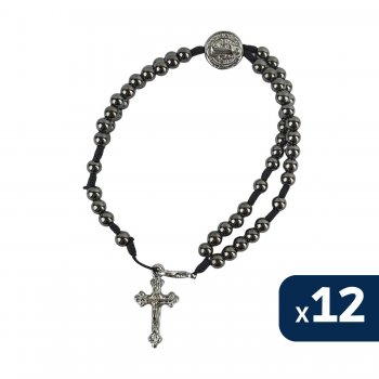 KIT C/12 PULSEIRA TERCO HEMATITA - MEDALHA SAO BENTO