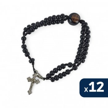 KIT C/12 PULSEIRA TERCO MADEIRA PRETO - MEDALHA SAO BENTO